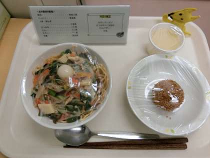 もやしラーメン・さつま芋のごま団子・りんごゼリー・牛乳