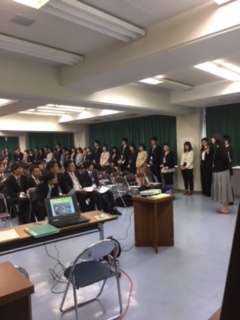 京西小学校、用賀小学校の教員、学校運営委員、PTA役員が一堂に会しました。写真は各校の紹介です。