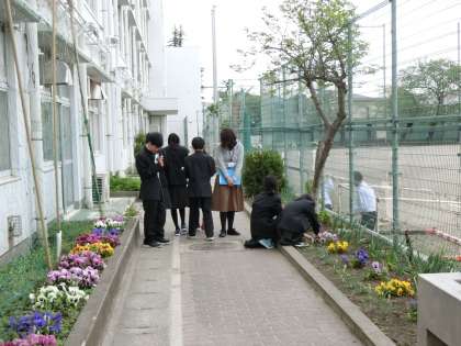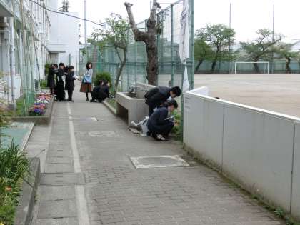 校庭の隅に生えている野草観察を行いました。タンポポ、ホトケノザ、カタバミ、カラスノエンドウ、ヒメジョン、オランダミミナグサ、ハコベ等の野草が観察できました。皆静かに学習をしており、先生方に感心されていました。