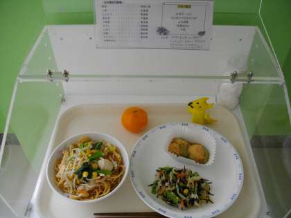 味噌ラーメン・ひじきとツナのサラダ・よもぎ餅・冷凍みかん・牛乳