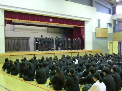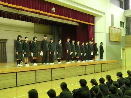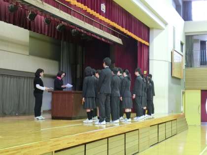 今年度初めての生徒会朝礼でした。始めに各役員・委員長に認証状が渡されました。
