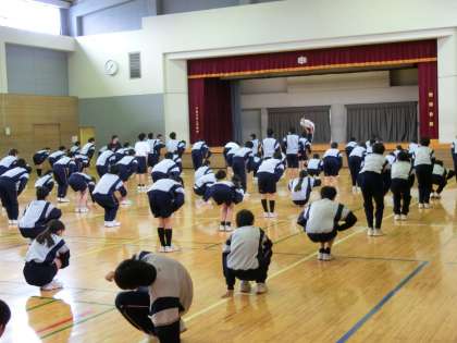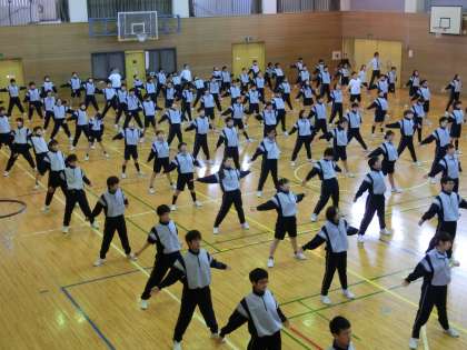 ラジオ体操の専門家の方をお招きし、1・2年生にラジオ体操をご指導いただきました。