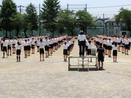 3年生の学年練習です。用賀中学校最後の運動会、練習も集中しています。