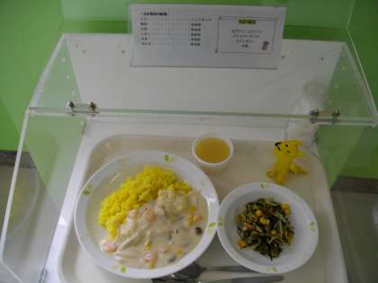 えびクリームライス・ファイバーサラダ・パインゼリー・牛乳