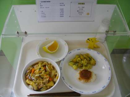 カレー南蛮・五平餅・青のりポテト・河内晩柑・牛乳