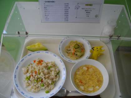 枝豆じゃこチャーハン・春雨サラダ・酸辣湯・メロン・牛乳