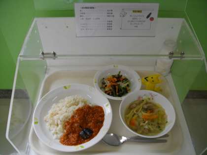 1年生は、ガーリックライスがにんにく臭い(にんにくなのでそうなのですが…)と食べられない人も多くいた様子でした。中学校用のレシピになっていてほかの学校でも出しているものなのですが・・・