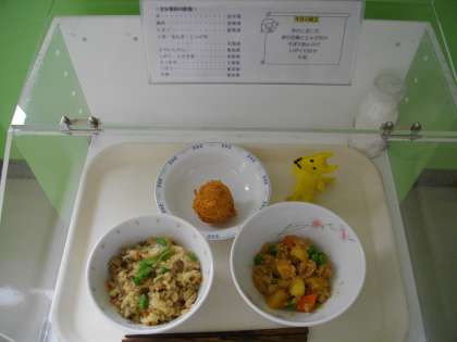 きのこおこわ・凍り豆腐とじゃが芋のそぼろあんかけ・いがぐり坊や・牛乳