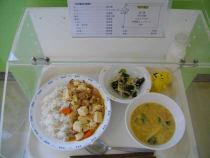 ご飯・四川豆腐・中華風コーンスープ・じゃこサラダ・牛乳