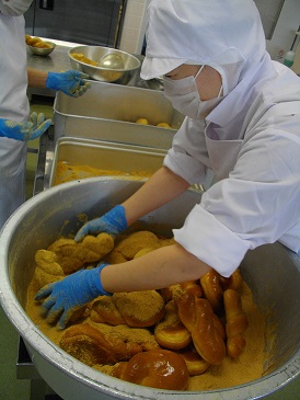 今日は、いつも大人気のきな粉揚げパンを作ります。