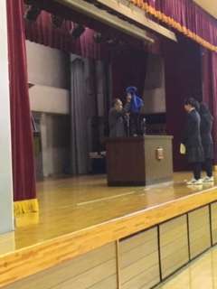 1名は東京代表として全国大会に選出されましました。校長先生が持たれているのは、賞品の一つのトレーナーです。