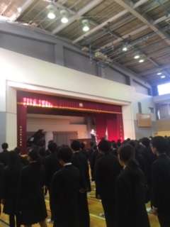 校長先生の話の後に校歌斉唱を行いました。指揮、伴奏は2年生にバトンタッチです。