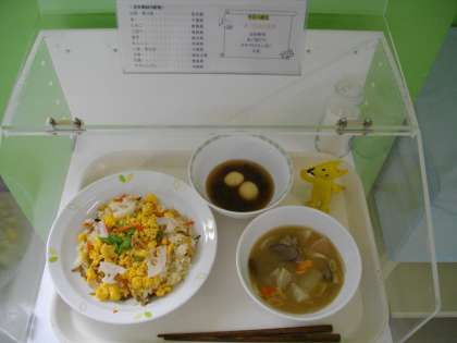 五目寿司・あごだんご汁・白玉汁粉・牛乳