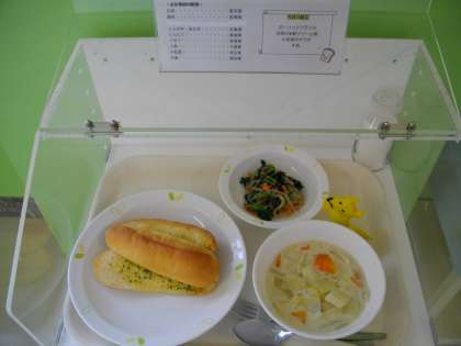 ガーリックフランス・白菜の米粉クリーム煮・小松菜のサラダ・牛乳