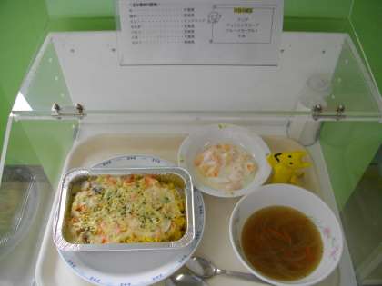 給食では、ドリアに似た料理の焼かない版、えびクリームライスやキャロットライスのホワイトソースかけ作ることもあります。