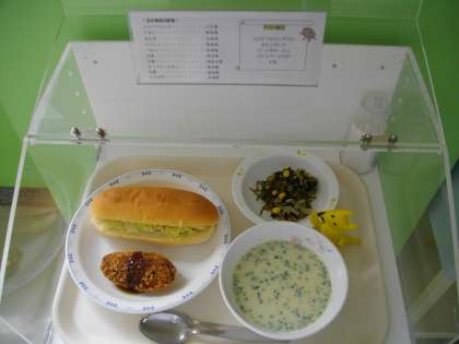 むろあじのメンチカツセルフサンドイッチ・コーンポタージュ・ファイバーサラダ・牛乳