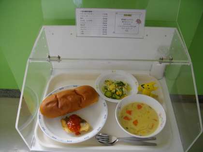 黒砂糖コッペパン・魚のチリソース・キャベツのレモンドレッシングサラダ・クリームスープ・牛乳