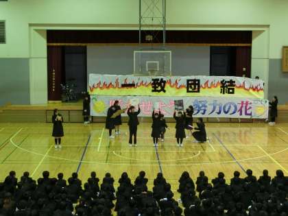 12日5・6時間目に新入生説明会を開きました。委員会・部活の説明を2・3年生が分かりやすく行いました。