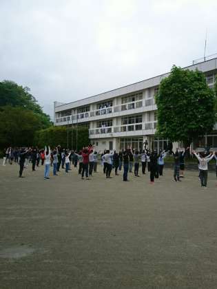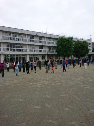 6時30分より朝会です。ラジオ体操の様子です。