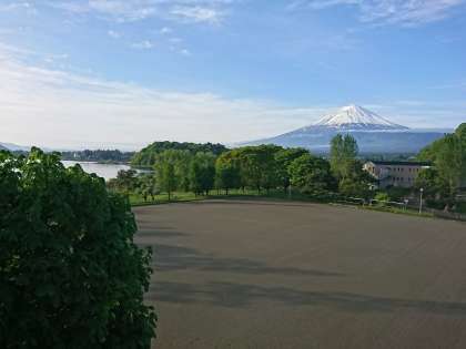 おはようございます。起床の時間となりました。河口湖の朝は晴天で、学園の庭からは富士山がはっきりと見えます。本日もよろしくお願いいたします。