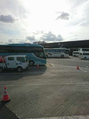 海老名サービスエリアを15時43分出発しました。学校到着予定時間は16時30分です。