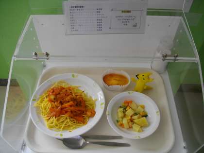 スパゲティーペスカトーレ・コロコロ豆サラダ・カステラ・牛乳