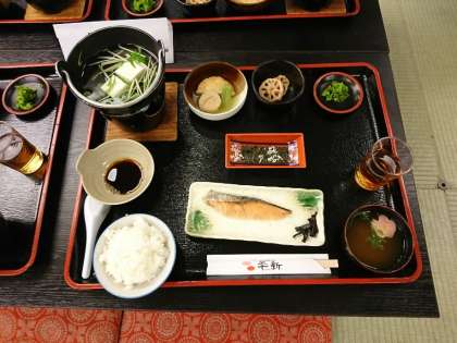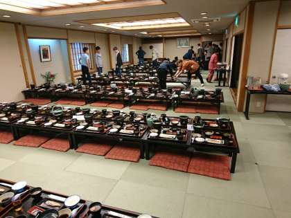 6時45分から朝食になります 。朝は大広間で全員揃って食べます。 本日の 朝食 メニューです 。
