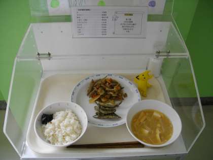 麦ご飯・手作りのり佃煮・きびなごのから揚げ・変わりきんぴら・大根のみそ汁・牛乳