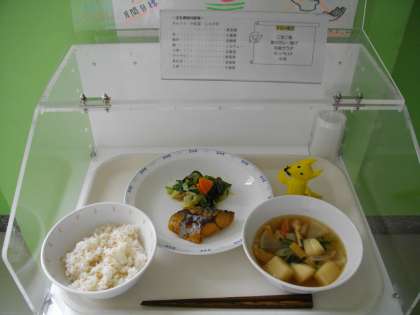 ごまご飯・魚のカレー揚げ・和風サラダ・のっぺい汁・牛乳