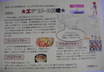 2日早いのですが、今月の食育の日として「エジプト料理」を作りました。