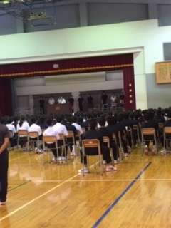 台風の影響で生徒会朝会が中止になりました。代わりに生徒会役員選挙の前にまとめの会を行いました。