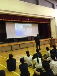 > 9月30日は用賀中学校の開校記念日です。全校朝会では、校長先生が本校の歴史を話されました。