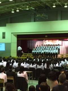 1年C組から合唱コンクールが始まりました。たくさんのお客様の前で緊張しながら日頃の練習の成果を披露しています。