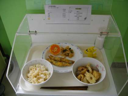 茶めし・ししゃもの天ぷら・おでん・大根の土佐漬け・早香・牛乳