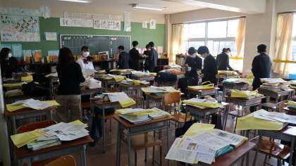 久しぶりの登校です。短い時間ですが教室で過ごす貴重な時間です。卒業式の説明に表情も真剣です。
