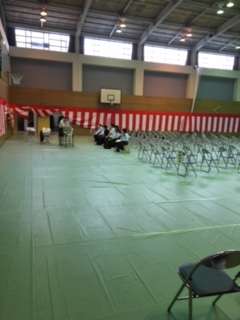 雨の中1年生の分散登校は無事終了しました。体育館2クラス、特活室、格技室に分かれて行いました。