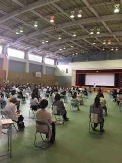三密を防ぐため、間隔をあけてお座りいただきました。お忙しいところたくさんのご参加ありがとうございます。