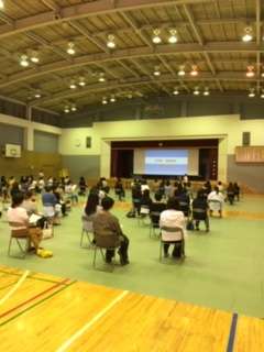 たくさんの保護者の皆様にお集まりいただきました。全体会の後、クラス懇談を行います。