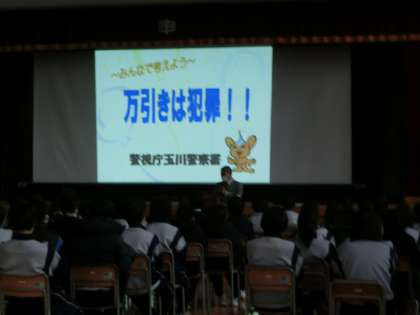 玉川警察より講師の方をお呼びして、セーフティ教室を開催しました。テーマは万引き等犯罪防止です。
