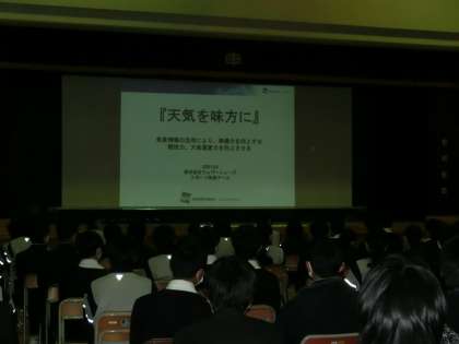 5時間めは2年生が体育館でウエザーニューズの講師の方から、最近の気象情報の活用や雲の読み方、スポーツ大会への気象情報のサポート等とても興味深く、驚きのお話を聞くことができました。