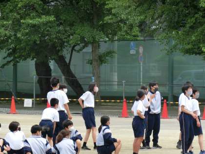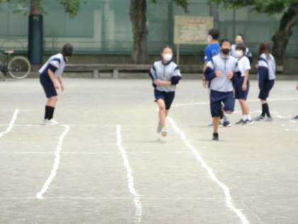 体育の時間もスポーツ大会2021の練習です。今回は全員リレーです。皆、足が上がっていて早い人が多い1年生です。