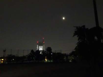 曇りで残念ながら、赤い月は観察できませんでしたが、満月に戻る際は空が晴れました。