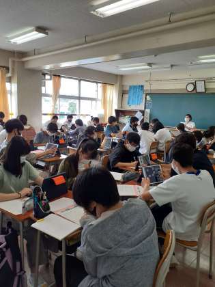 タブレットも使用して授業を行っています。