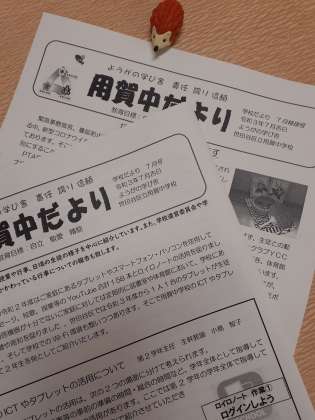 用賀中だよりは、行事や出来事、授業の風景などの様子をお知らせするために毎月発行されています。