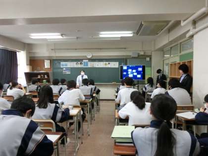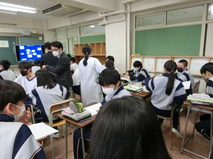 理科の電気野の研究授業がありました。秋田県大館市より先生がお越しになり、区内の先生もたくさん出席されました。その中で生徒は堂々と発表しました。