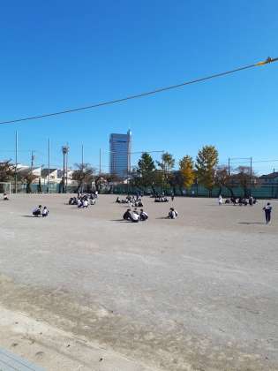 昼休みだったので、校庭には多くの生徒がいましたが、地震の放送ですぐに校庭中央付近でしゃがんで揺れの収まるのを待つ姿が見られました。