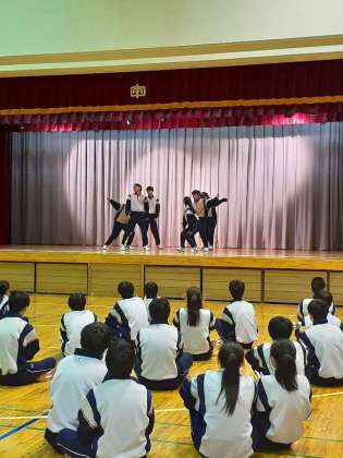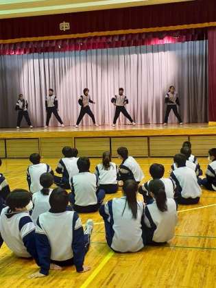3年生のダンス授業は本日が最終回です。舞台上各班で発表披露しました。