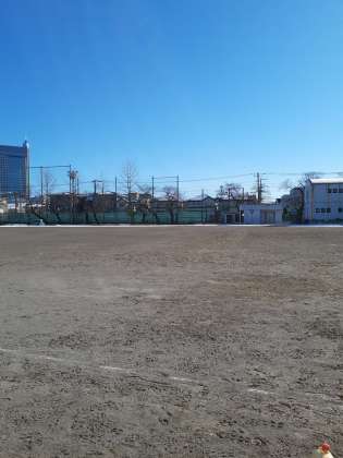朝のうちは真っ白だった校庭ですが、用賀中学校は日当たりが良いのでほとんどとけてしまいました。
