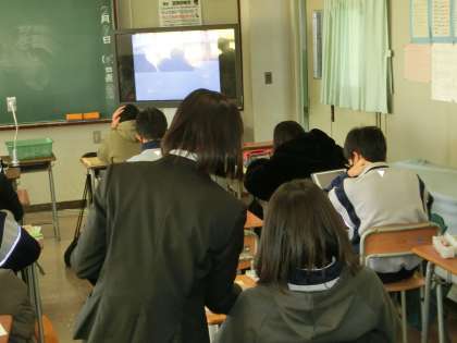 ロイロノートを使用し生徒は意見を出し合っていました。Web学習の生徒もいるのでロイロのアンケートだと意見を出しやすいですね。