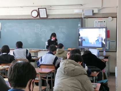 家庭科の研究授業の内容は「防災」です。避難所に避難する際に持参する品物等について学びました。生徒は品物の多さに驚いていました。